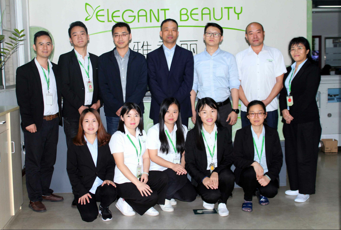 圖為雅香麗(深圳)化妝用品有限公司干部與中知(北京)認(rèn)證有限公司質(zhì)檢老師合影留念
