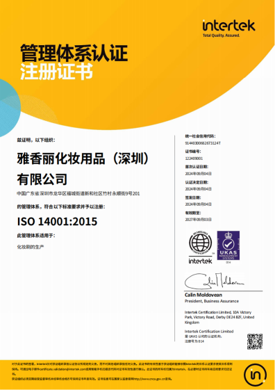 熱烈慶祝雅香麗化妝用品(深圳)有限公司榮獲質(zhì)量、環(huán)境和職業(yè)健康安全管理體系認(rèn)證!!!