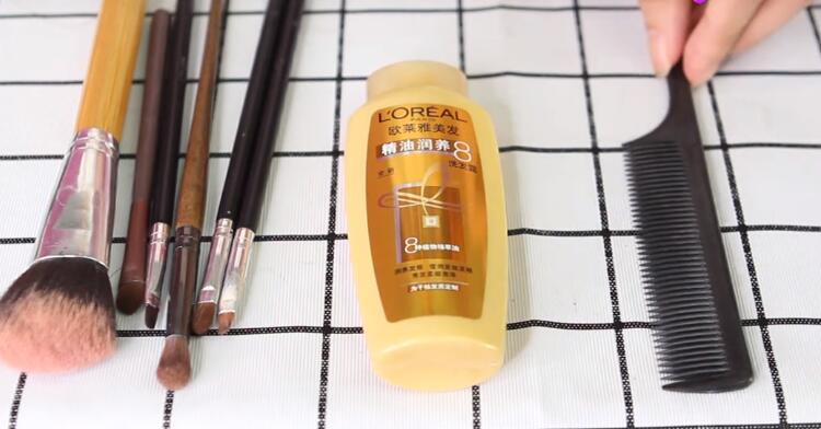 (一杯清水、一杯放入洗發露,把刷子在水中清洗一次再用梳子來回摩擦)
